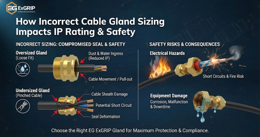 Learn what happens when a cable gland fails, real industrial failure scenarios, key risks, and how correct sizing with ATEX and Ex cable glands prevents accidents....